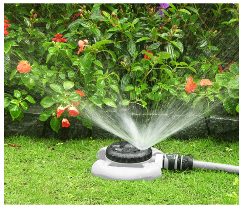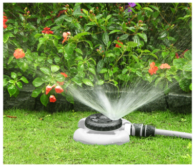 Állítható szórásképű kerti locsoló, jó megoldás, ha a kertünk bonyolult kialakítású és nem szeretnénk automata öntözőt.