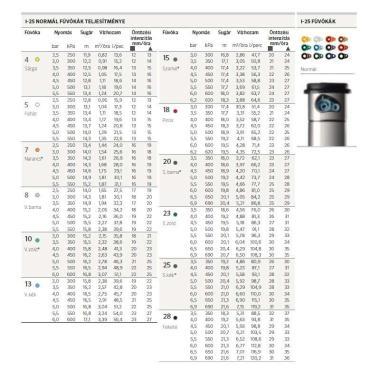 MŰSZAKI ADATOK - kijuttatott vízmenny.: 13,6-120,7 l/min - öntözési sugár: 11,9-21,6 m - javasolt nyomástart.: 2,5-7,0 bar - öntözési intenzitás: kb. 15-30 mm/h - a vízsugár kilépési szöge: 25°